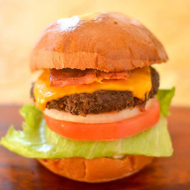 牛肉100%パティ130g ベーコン レタス レリッシュ トマト オニオン マヨネーズ チェダーチーズ ソース(マヨネーズ・マスタード・ケチャップ)