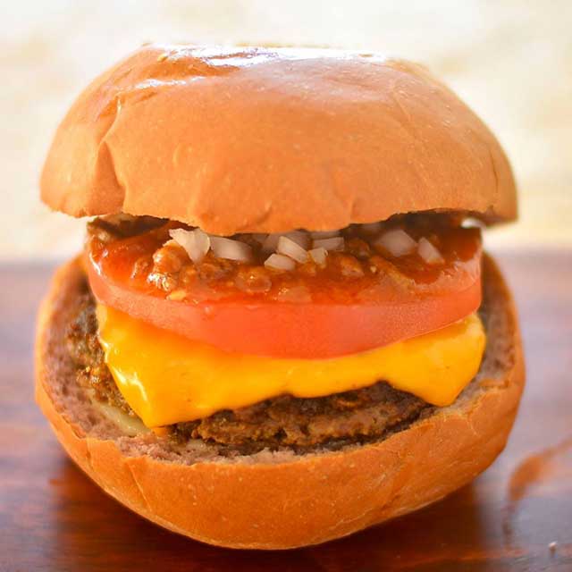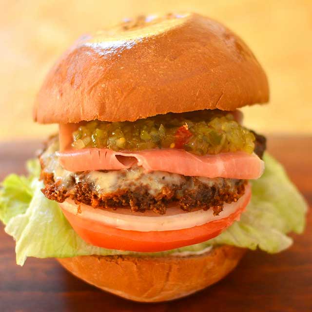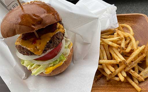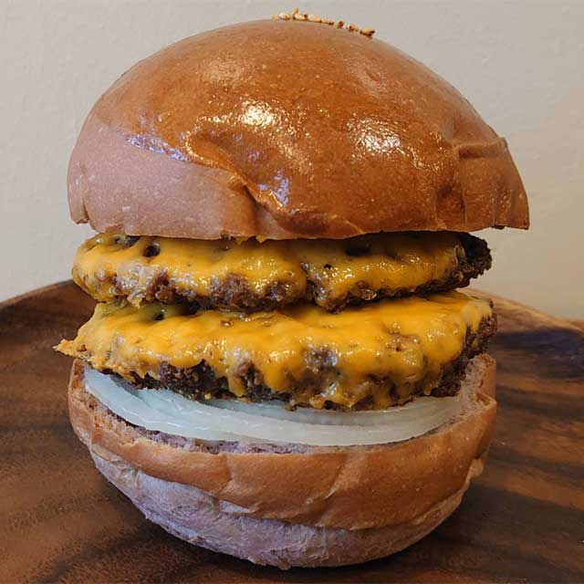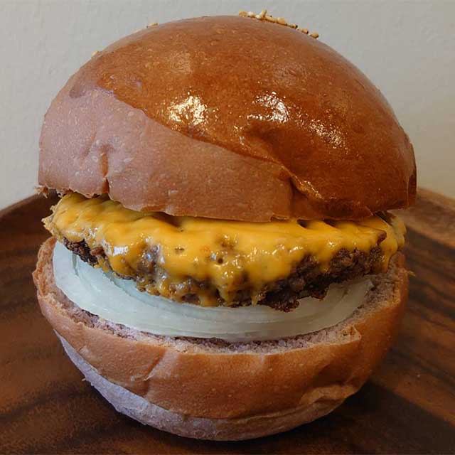 牛肉100% パティ130g×2 オニオン レリッシュ チェダーチーズ ソース(マヨネーズ・マスタード・ケチャップ)