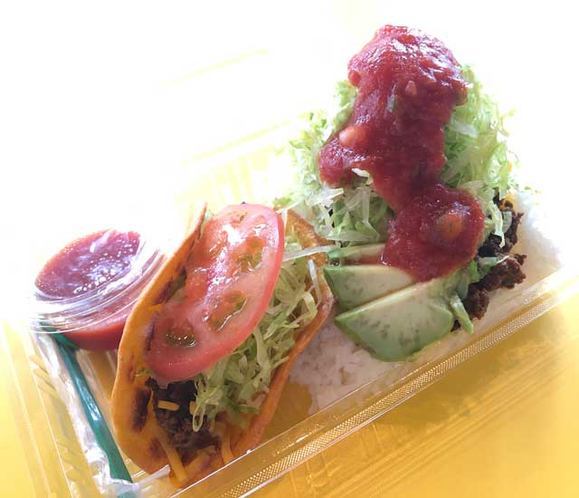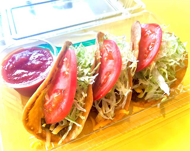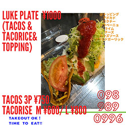 店内メニュー:タコス、タコライス、サイドメニュー、トッピングあります。