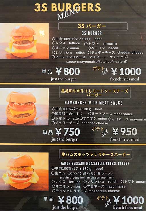 店内メニュー:ハンバーガー・フライドポテト・スコーン・ドリンク各種